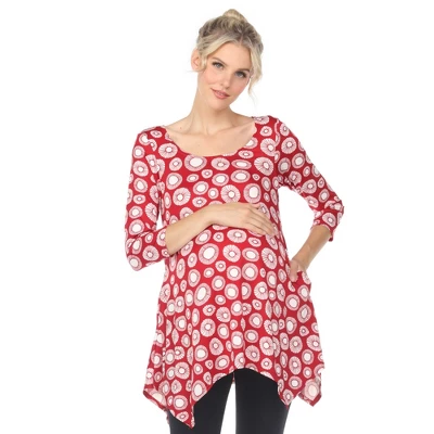 Stand out with this eye-catching geometric circle print. Features a 3/4 sleeves, scoop neck and shark bite hem this tunic is so versatile you can pair it with leggings, shorts or pants. The premium stretch fabric is a perfect partner for your maternity journey.