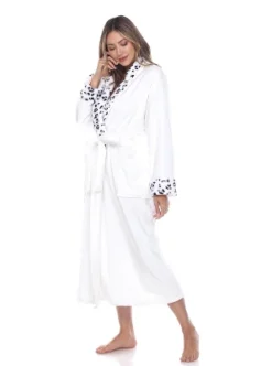 Womens Plus Leopard Print Cozy Lounge Robe – White Mark