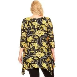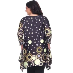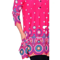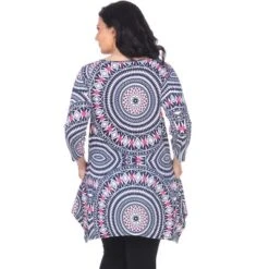 Women’s Plus Size 3/4 Sleeve Printed Maji Tunic With Pockets – White Mark