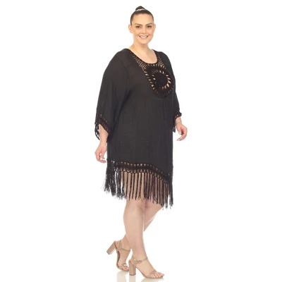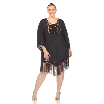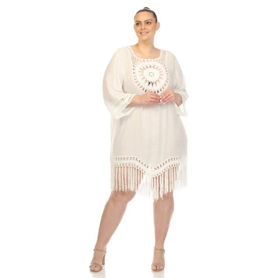 Plus Size Crocheted Fringed Trim Dress Cover Up – White Mark