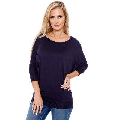 This essential dolman top will be your next go-to top thanks to its buttery soft, lightweight knit construction and cozy fit. This top feature a wide boat neckline, wide elbow sleeves and fitted hemline. This versatile top is perfect for your everyday looks and can be paired essentially with jeans, shorts, or skirt.