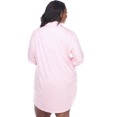 A breathable polyester sleep shirt features a notch collar, easy-wear button front, and chest pocket for classic style and perfect comfort.